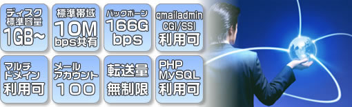 標準開放帯域 | 1Mbps(10Mbps共用) 帯域開放追加は出来ません。 (月間転送量の目安:332GByte) |